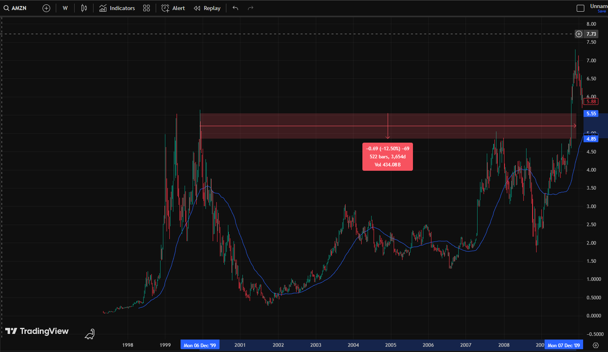 怎么理解 244 倍 PS 这个数字呢?咱们可以参考一下 2000 年 3 月 24 号当天,com 互联网泡沫最高的那一天,那些头部企业的 P/S 估值在什么位置。Amazon(亚马逊):19x。Cisco(思科):35x。Qualcomm(高通):22x。Microsoft(微软):26x。IBM:3x。Oracle(甲骨文):27x。Intel(英特尔):16x。在互联网泡沫之后,上面的大部分企业,就算是亚马逊、微软这样的龙头股,都花了 10-15 年价格才涨回了 00 年泡沫的高点。当然,244x 这个数字并不能直接说明 AI 赛道就一定泡沫很大,因为实际上现在大部分 AI 赛道的收入并不是这 $337.5 亿的 C 端市场,而是在花钱买卡搭基建上,但最终企业们买卡搭基建也是为了服务这些 C 端市场,而这个 C 端市场至少在现在并没有大家想的那么大。(来源 )